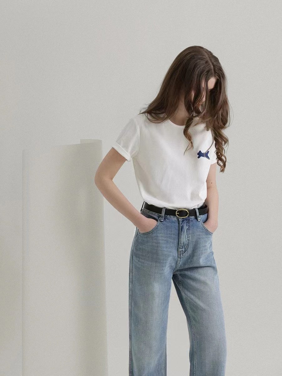 The Embroidered Summer Round Neck T-Shirt for women features intricate embroidery on a classic round-neck design, offering a blend of casual elegance and playful charm perfect for sunny days.